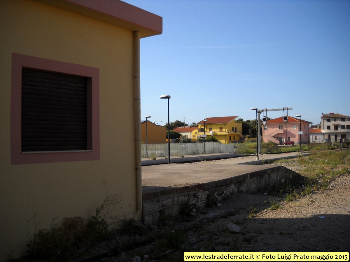 ![]() Il magazzino merci, il piano caricatore ed il secondo tronchino in stazione; si nota anche il portale semaforico sui binari in entrata da Sassari |