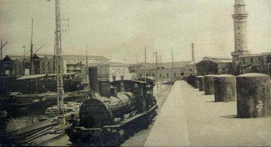 Locomotiva in manovra nel porto di Napoli in una foto d'epoca | ||