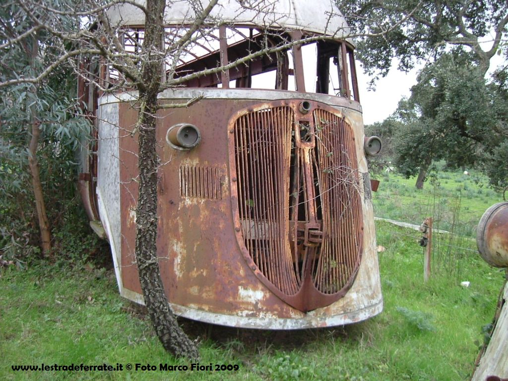 ![]() Carrozza viaggiatori ex FCS e automotrice Emmina M1 (a destra, priva del radiatore frontale) abbandonate a Tirso (Foto Max Giani - per gentile concessione) |