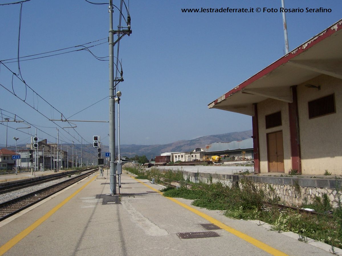 ![]() L'ex fabbricato merci con la palina dei minibus per Marcianise, oggi soppressi |