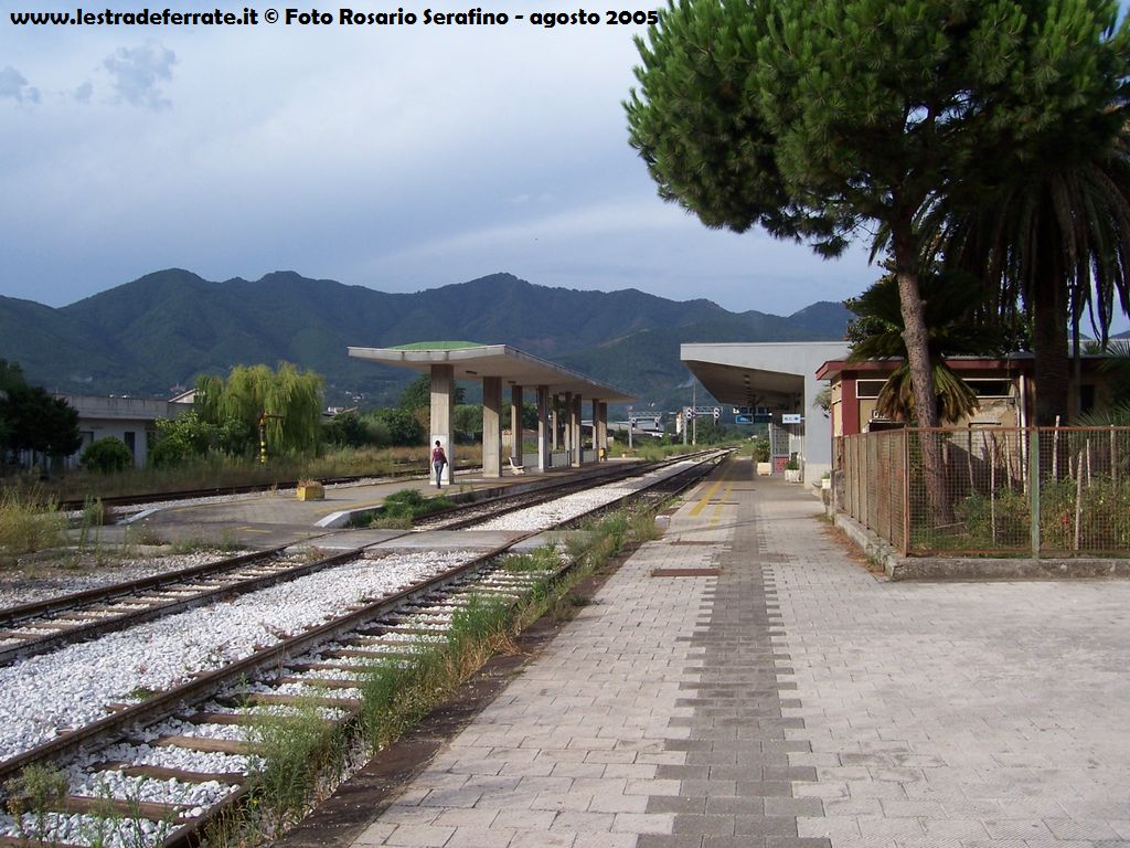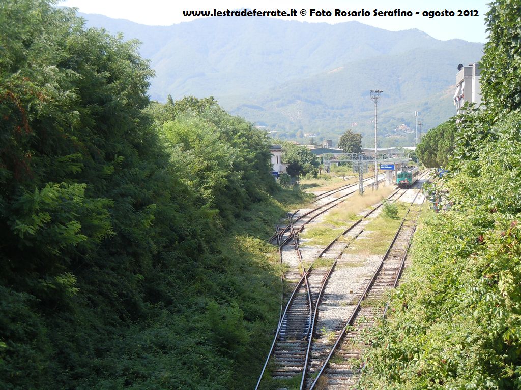 ![]() I binari in uscita dalla stazione con convogli verso Salerno (a sinistra) e verso Codola (a destra) |